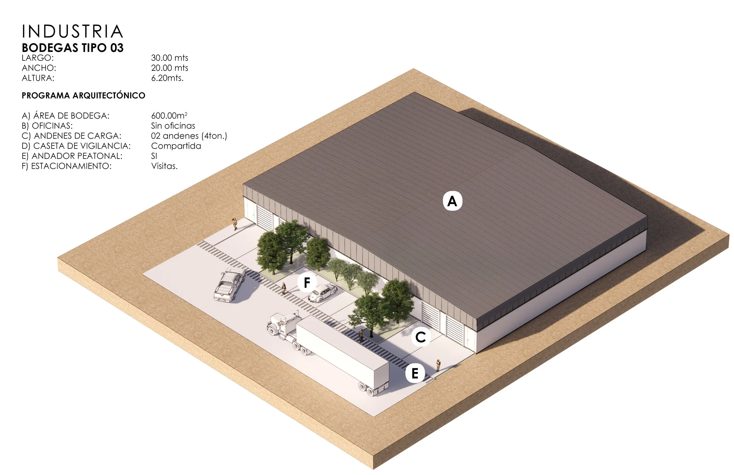 El concepto se basa en la diversificación de espacios, dividiendo el terreno en dos zonas principales: bodegas industriales y bodegas comerciales. Esta decisión, motivada por restricciones urbanas, se convirtió en una oportunidad para crear áreas más pequeñas destinadas a talleres, almacenes o showrooms. Adicionalmente, se incorporaron oficinas y estacionamientos para ofrecer un entorno integral.